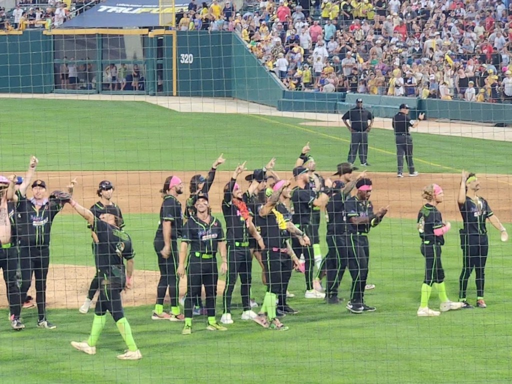 The largest crowd in Victory Field history cheered on the Savannah Bananas in their inaugural visit to the Circle City. We scored tickets thanks to our friend Robbie and we made it into the stadium to grab third baseline seats in the shade.