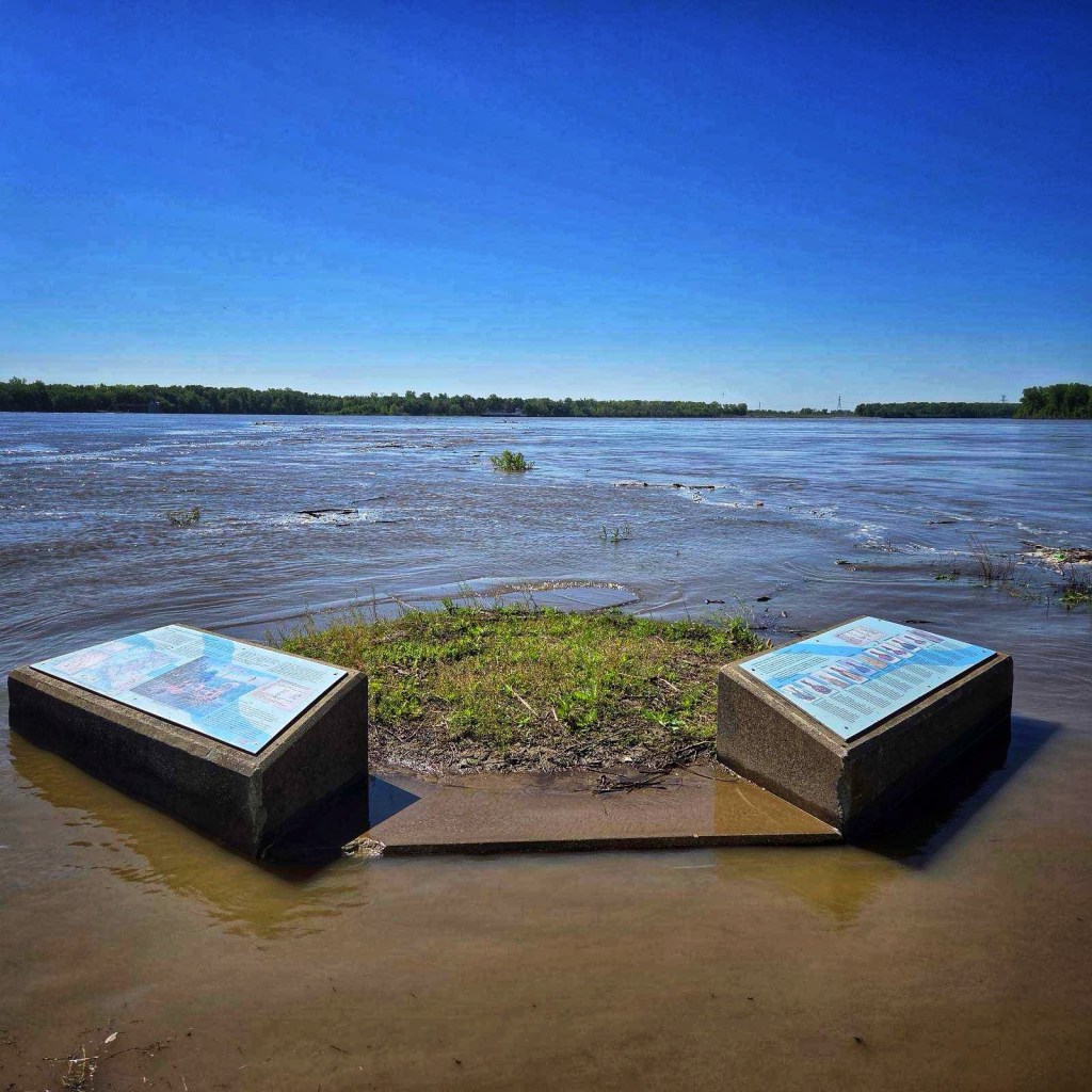 Andy was keen to continue his journey alongside Lewis and Clarke that he began in Clarksville, IN earlier in April. We drove and then walked out to the confluence, which is the site where the explorers departed from civilization and struck out west in 1804.